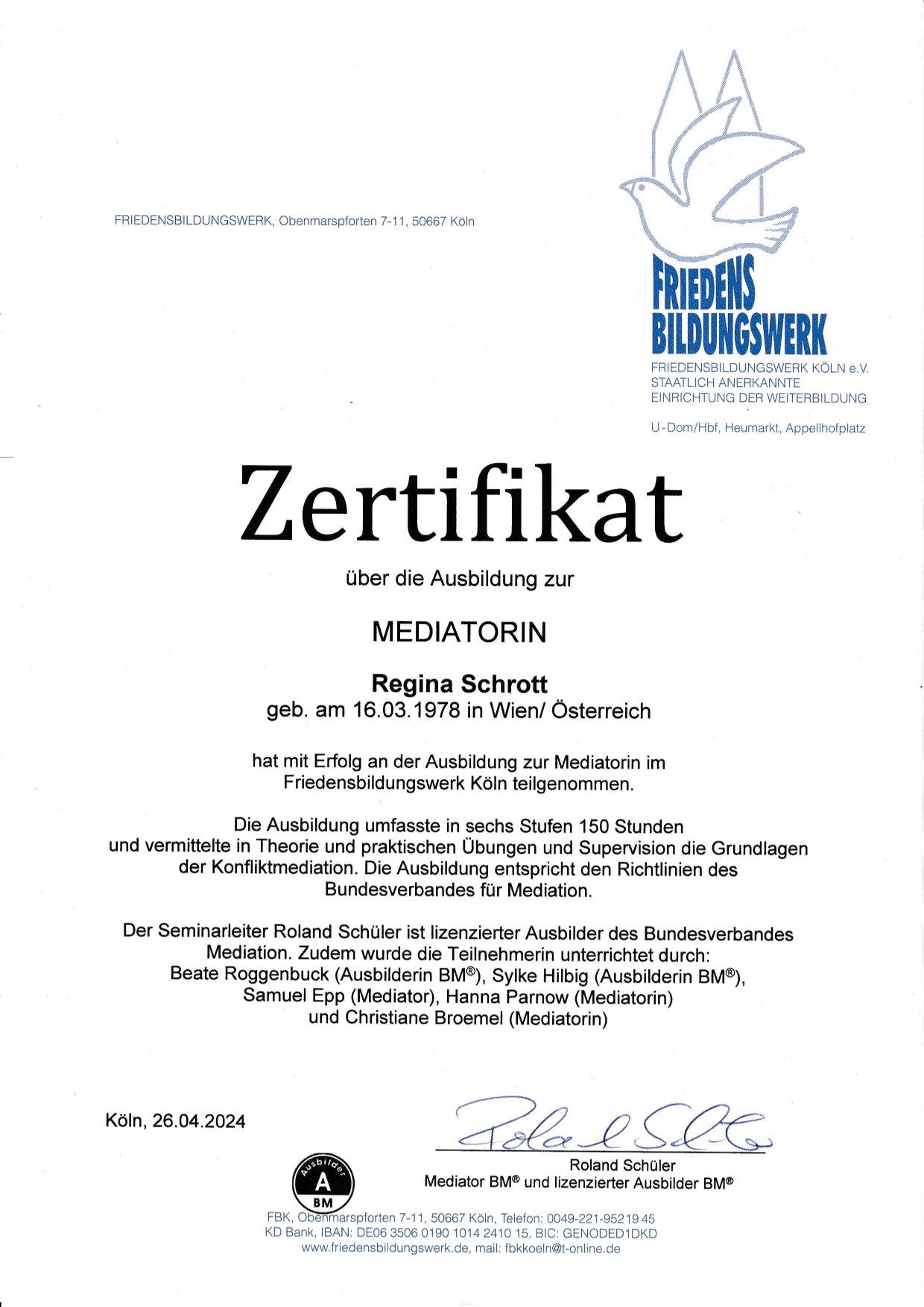 Zertifikate von Regina Schrott
